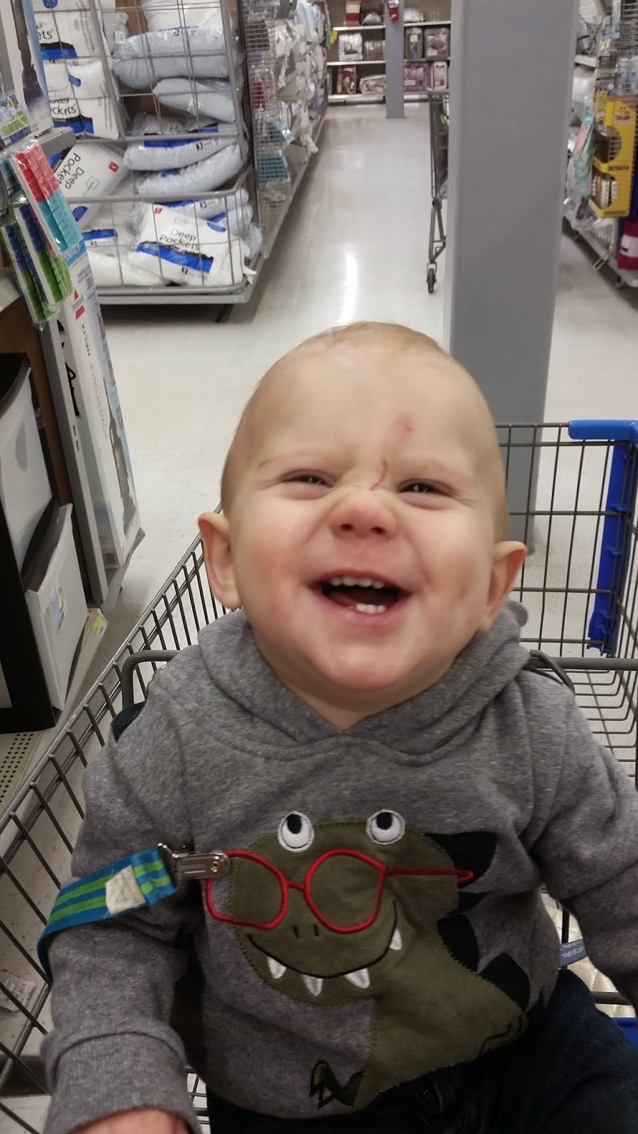 With each day he takes more and more steps. It's amazing! And hopefully, there will be fewer and fewer cuts and scrapes... But, he's a boy, and I'm guessing this is only the beginning for him.